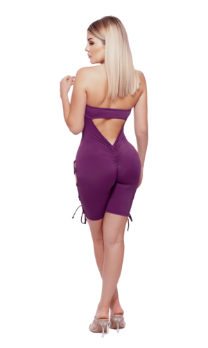La parte trasera se compone de tiras cruzadas ajustables y espalda en corte V con frunce en glúteos creando efecto push up.